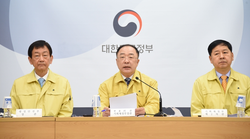 16日,包括国务总理丁世均、经济副总理兼企划财政部长官洪楠基在内的各个部门长官及次官在世宗市政府大楼召开临时国务会议,落实了上述2020年度第二批追加预算案。