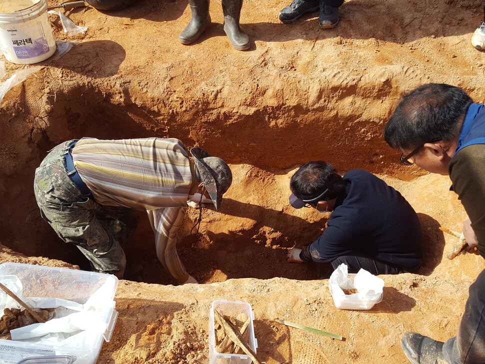 位于全罗北道完州郡伊西面南溪里的草南圣地天主教殉教者遗骸发掘现场。图片来源:天主教全州教区