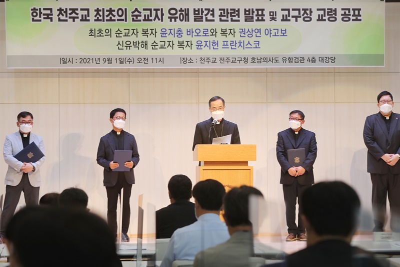 韩国天主教全州教区1日表示,根据三位遗物和遗骸进行严密检查后判定,这三位分别是尹持忠、权尚然和尹持宪。