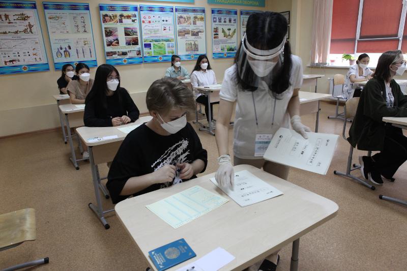 韩国语能力考试(TOPIK)将于2022年实施六次,下半年还将首次设口语考试。图为当地时间7月11日,在哈萨克斯坦阿拉木图举行的第77届韩国语能力考试现场。图片来源:韩联社